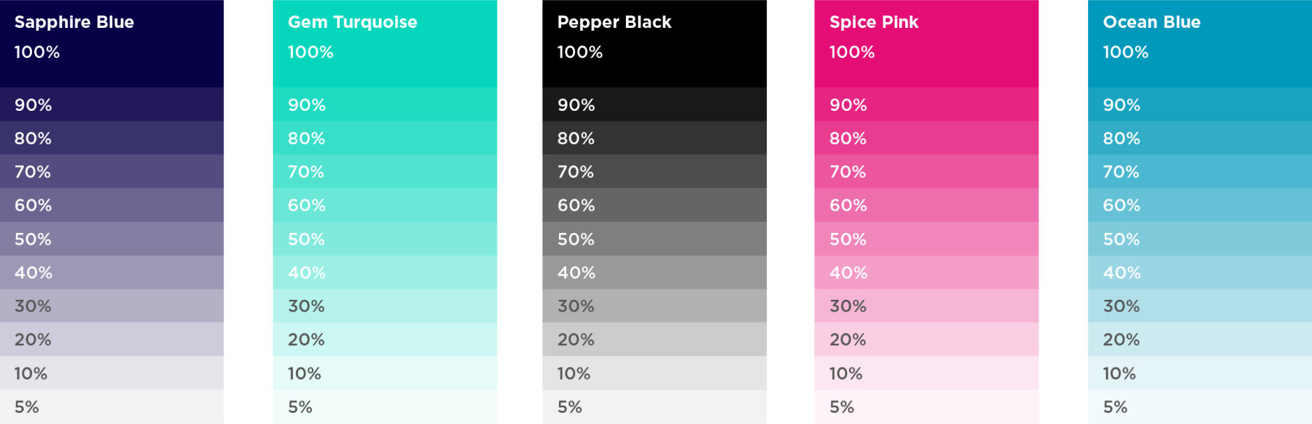 - Spice Pink is used sparingly for accents, highlights and call-to-actions